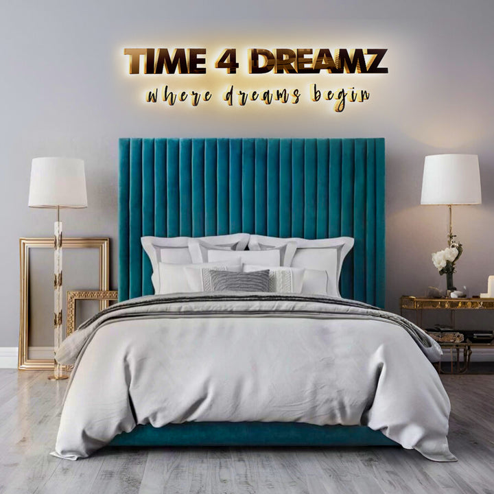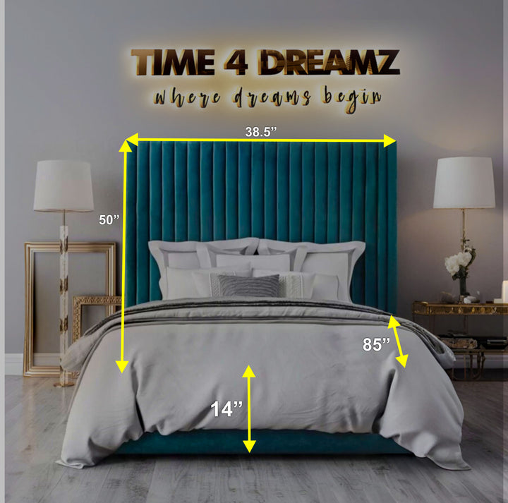 - Unique floor-standing headboard with a commanding 47" height.
