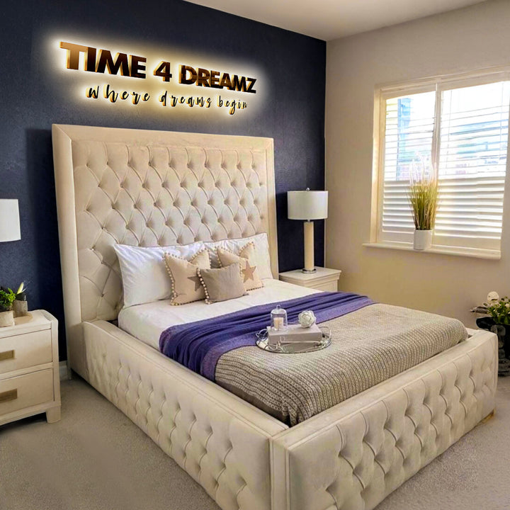 Introducing the Hudson Ottoman Storage Bed Frame from Time4Dreamz—a stunning blend of contemporary elegance, luxurious design, and practical storage. Crafted to make a bold statement, the Hudson bed features a unique vertical striped headboard, customizable with silver or gold accents, that brings a five-star luxury ambiance to any modern bedroom.